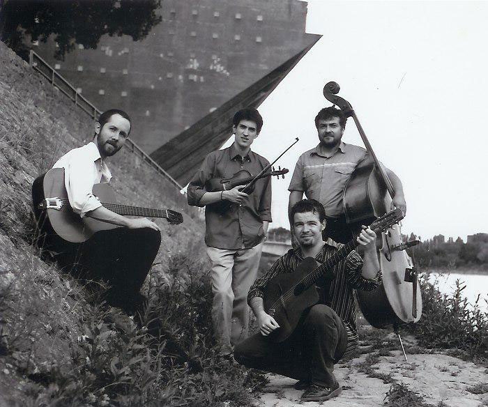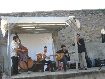 Benjamin Pavageau, Jérome Freyssinet, deux guitaristes et Nours un contrebassiste jouaient un répertoire composé de reprises de Django et d'autres ténors de la guitare manouche.